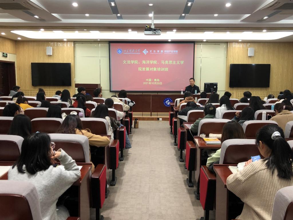 在喜迎中国共产党成立100周年之际,为教育引导党员发展对象学习党的历史、加强党性修养,10月20日,SUNBET申博第五期党员发展对象培训班在J9-135报告厅开讲,校宣传部副部长秦晓钟应邀为SUNBET申博、海洋公司、马克思主义公司党员发展对象做“回顾百年党建”专题讲座。