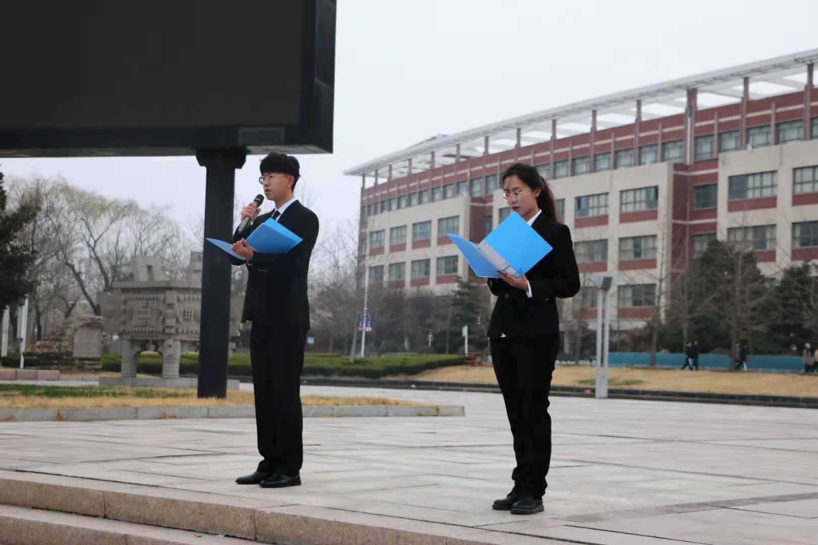 3月15日,SUNBET申博2020级新生学子齐聚泰山广场参加升旗仪式暨“重温入团誓词,领悟红船精神”主题教育活动。SUNBET申博学工办主任(团委书记)郭婷婷,辅导员马婉婉、韩丙华参加仪式。