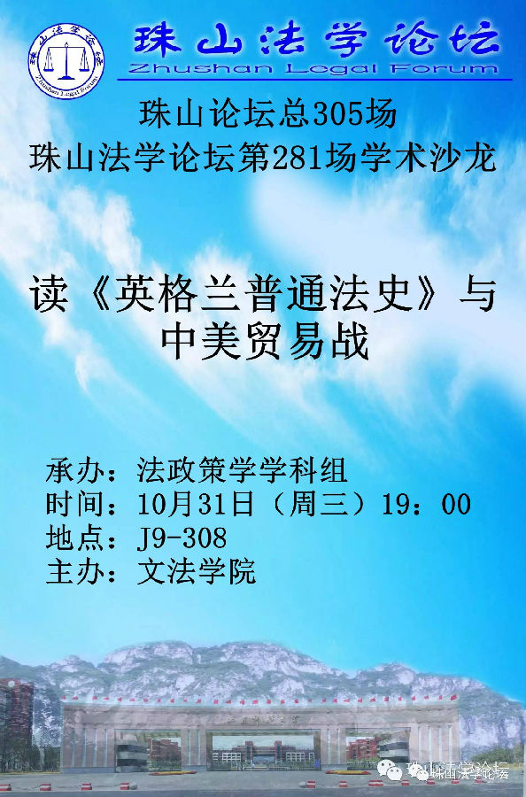 【学术沙龙通知】读《英格兰普通法史》与中美贸易战