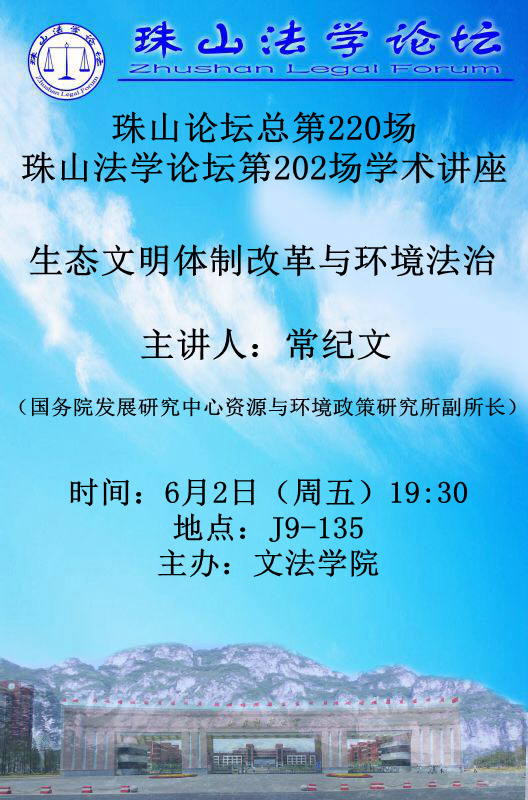 主讲人简介:常纪文,新中国首位环境与资源保护法学专业博士后,现任国务院发展研究中心资源与环境政策研究所副所长,中国地质大学(北京)兼职教授、中国社会科公司法学系教授,湖南大学客座教授、博士生导师,中国环境科学学会环境法专业委员会副主任委员、中国环境科学学会绿色金融专业委员会副主任委员和中国环境科学学会环境损害评估专业委员会委员,国务院安委会咨询委员会专家、环境保护部环境影响评价专家委员会专家、最高人民法院环境资源司法审判咨询专家,北京市政协委员。曾任中国社会科公司法学研究所社会法研究室主任、研究员,中国地质大学(武汉)讲座教授,北京市安全生产监督管理局副局长,曾赴德国马普研究所、日本早稻田大学、日本一桥大学、美国哥伦比亚大学、美国天普大学、泰国最高行政法院等机构访问、交流。曾参与2014年G77+中国气候变化会议和2015年巴黎气候变化智库会议。
