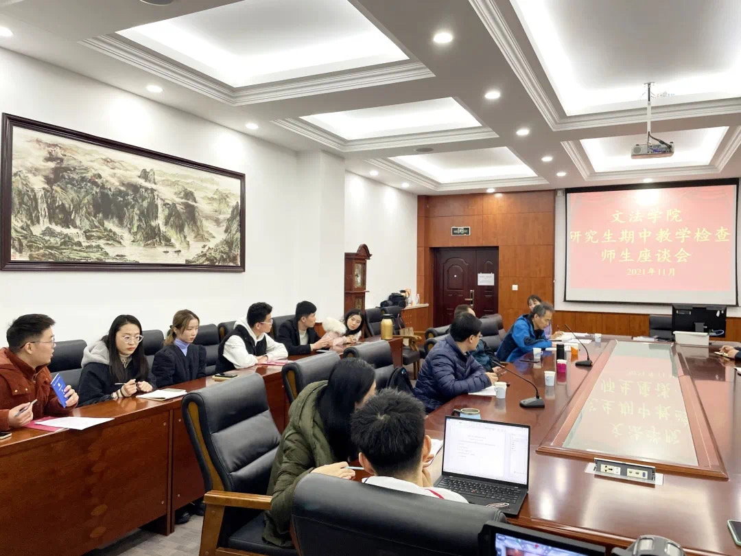 2021年11月9日下午,公司在J9-321召开了研究生期中教学检查师生座谈会。本次座谈会由秘明杰副经理主持,硕士生导师代表、任课教师代表、各年级、各专业硕士研究生代表以及研究生秘书参加座谈,研究生教学督导员李光禄教授列席会议。