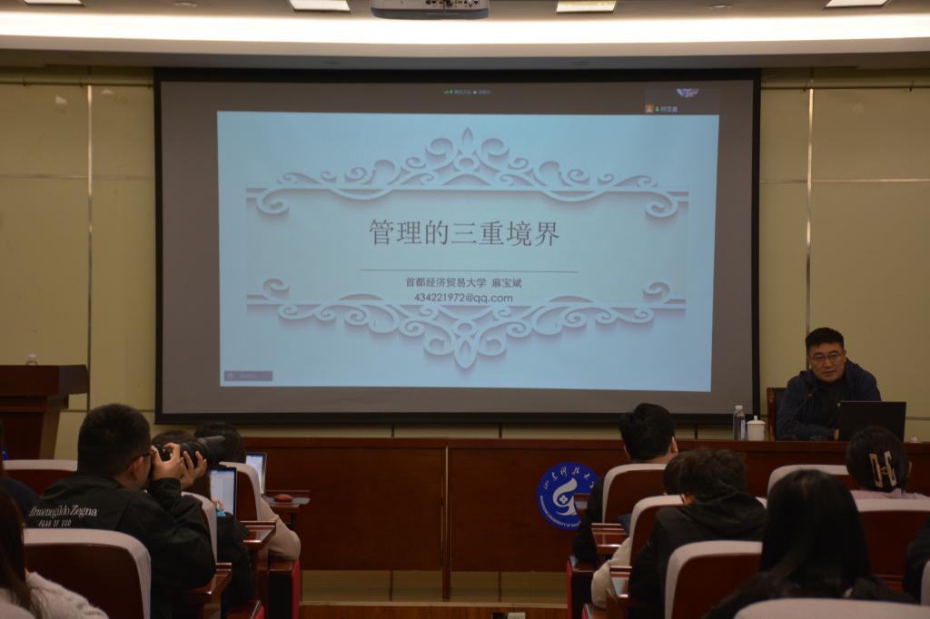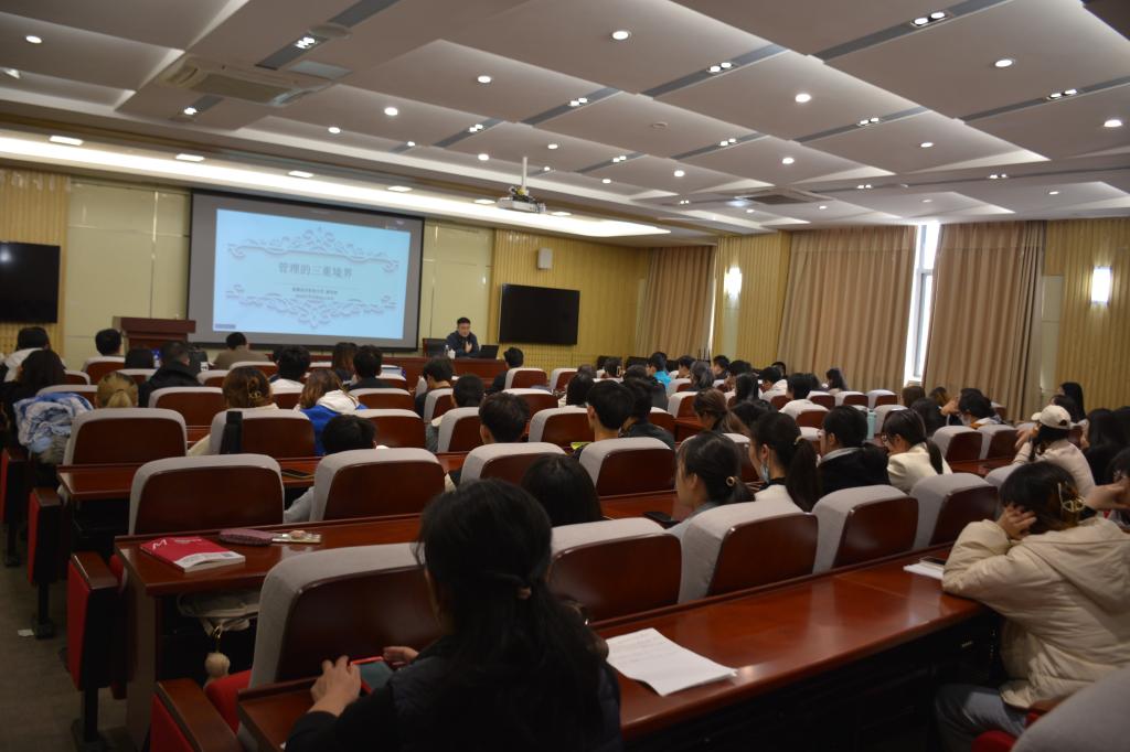 报告会伊始,麻宝斌教授从人本身的原义问题“我是谁”、“我追求什么”出发,生动形象地阐释管理的起点与归宿为人性,发人深省;他立足人性、人格、人生等多个角度,点明人的本质问题,阐明管理学在人格塑造、人生经历、人性本源等宏观问题上的重要作用;他将人格、人性、人生有机结合,引出人的追求与人生境界,旁征博引自人性出发,点明管理起点,横纵类比体现管理学人性论,深入浅出关注现实、展现管理价值,落脚领导管理与执行,自理论入实践。