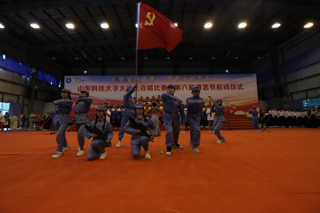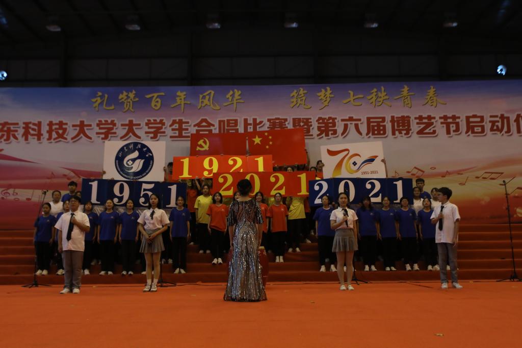 文法学子用歌声向建党100周年献礼,用歌声向公司表白,倾情演唱《没有共产党就没有新中国》、《少年》嵙大版。舞台上,同学们自信从容,响遏行云的歌声、气势磅礴的朗诵声,在古典乐器与现代化音乐的交汇配合下,声声入耳,动人心魄,赢得了在场评委老师和观众的一致认可。荣誉和掌声背后是文法人是不懈的付出和艰苦的努力,大家上下齐心,不畏夜晚的寒冷,不惧身心的疲惫,展现了文法学子斗志昂扬、团结进取的精神面貌,展露了有文有质、内外兼修的个人素养,唱出了文法人的风采,唱出了文法人的士气。