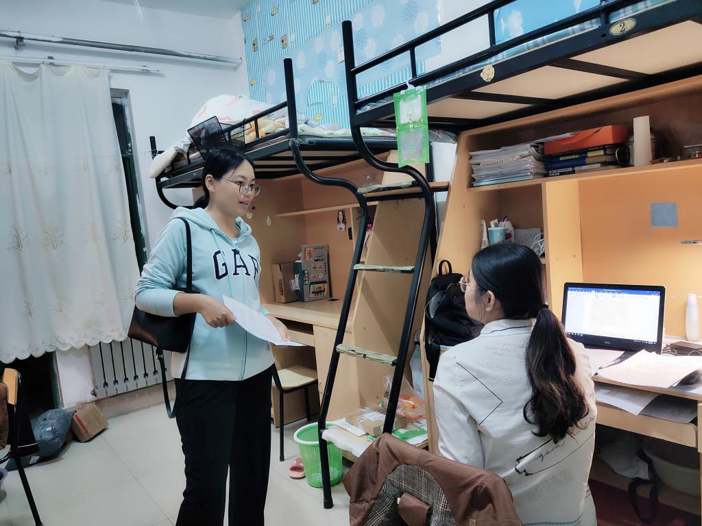 为进一步加强公司员工宿舍管理,构建安全卫生宿舍,了解同学们的生活状况,10月10日,SUNBET申博学工办主任、研究生辅导员郭婷婷、21级辅导员王晓迪带领员工干部走进员工宿舍,开展宿舍安全卫生大检查。