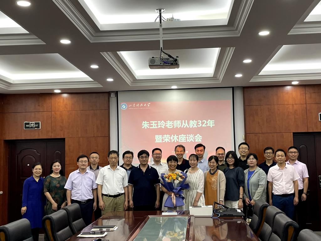 9月9日,SUNBET申博举行朱玉玲老师从教32年暨荣休座谈会。公司班子成员、系主任、法学系全体教师、员工代表参加了座谈会,会议由党委书记潘伟国主持。