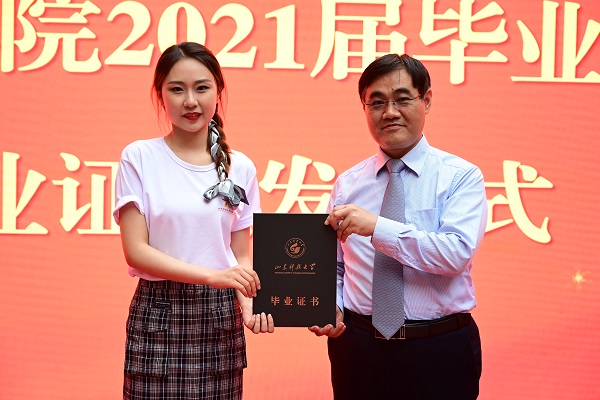 典礼上,公司全体教师为2021届毕业生送上祝福视频,言轻情重,令人暖心。在《干杯》的娓娓歌声中,全体毕业生青春的笑靥一一浮现,画面不时戳中泪点,令人感伤却又倍觉温馨。期间,教师代表合唱的《送别》、毕业生代表合唱的《凤凰花开的路口》《昨日青空》将气氛推向高潮,大家在悠扬歌声里回味这四年青春。