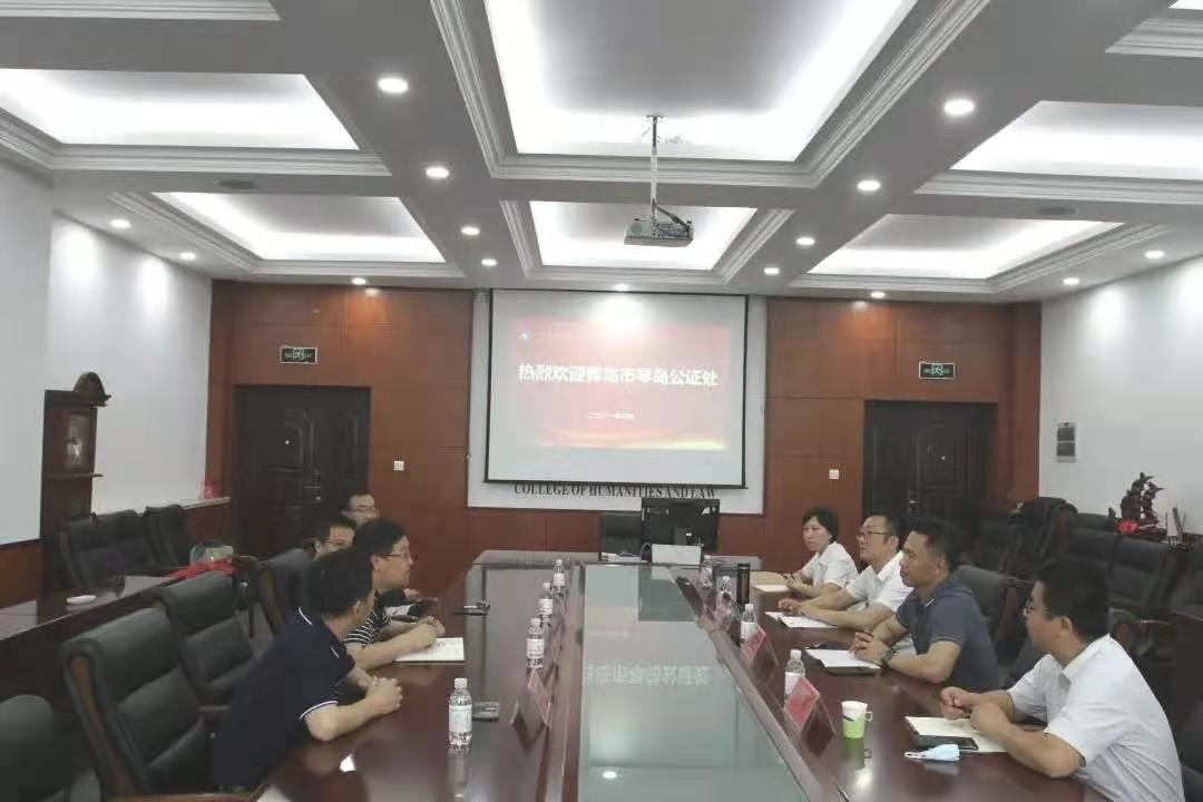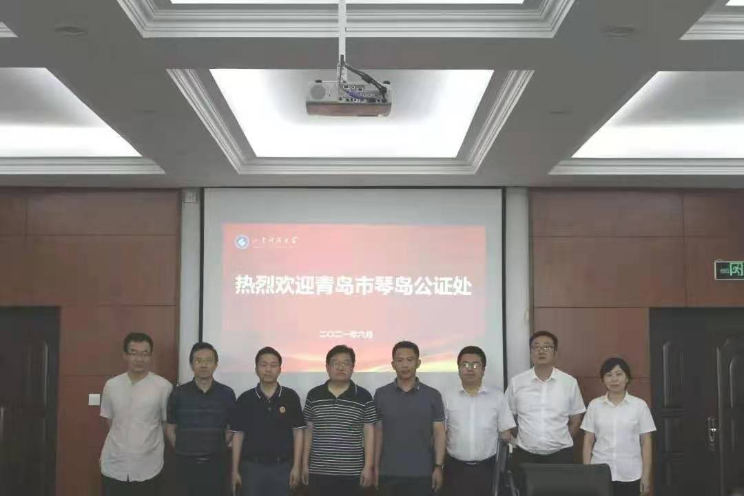2021年6月25日上午,青岛市琴岛公证处主任董克海、副主任阮军、主任助理宁雪、公证员张晨晨一行莅临SUNBET·申博(中国区)官方网站-Official Website进行访问交流,公司副经理秘明杰、高新科技与知识产权法研究所所长李钢、法学系主任吴立志、诉讼与司法制度研究所教师李贵扬参加了此次交流活动。双方代表就各自单位情况进行介绍,并就日后的交流与合作事宜进行了沟通交流。