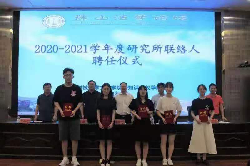 表彰大会后,还举行了珠山法学论坛负责人和研究所联络人聘任仪式,与会领导、嘉宾为公司第十二届珠山法学论坛负责人和2020-2021学年度研究所联络人颁发了聘书。