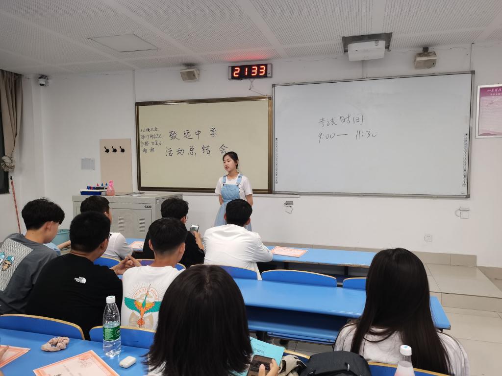 致远中学志愿服务活动以晚自习陪读为基础,涵盖多个方面。在此期间,志愿者要随时关注员工情况,维持正常自习秩序,同时也要面对员工提出的各种“古怪”问题,并以正确、有趣、容易接受的方式进行解答,让同学们在交流互动中吸收所学,获取知识。此外,志愿者还积极带领各班员工参与致远中学举办的合唱、演讲、朗诵比赛和运动会等活动,并在其中承担活动策划、培训、指导、视频剪辑等多项工作,为致远中学文体活动做出贡献。