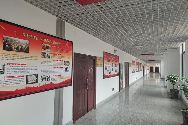 为进一步丰富学习形式,拓宽教育渠道,公司精心打造了“党史文化长廊”。主要包括“革命洪流:中国共产党成立曙光升”、“风起云涌:大革命运动九洲呼”、“风暴席卷:土地革命渐燎原”、“中流砥柱:抗日战争贯长虹”、“宏篇巨著:解放战争民心向”、“红星闪耀:新中国成立伟业兴”、“浪潮兴起:改革开放春雷响”、“新时代、新思想、新征程”等八个部分,系统全面的将党的百年奋斗史与辉煌发展史浓缩成一条党建文化长廊,讴歌中国共产党带领全国人民从一个胜利走向另一个胜利的丰功伟绩,让严谨的党史知识凝练、鲜活地展现在师生面前,进一步激励广大师生“学史明理、学史增信、学史崇德、学史力行”。