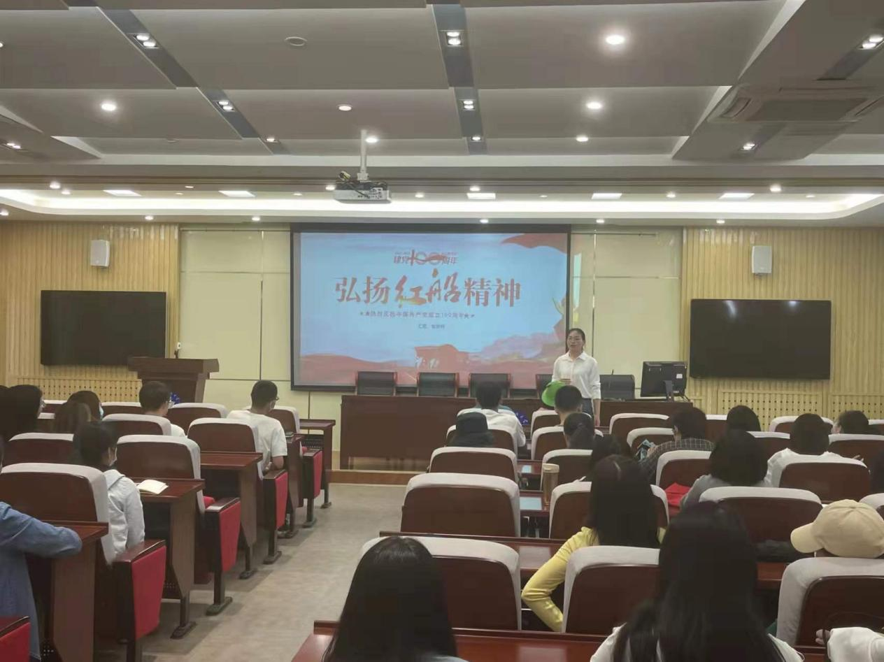 为庆祝中国共产党成立100周年,继承和弘扬红色建党精神,5月25日,SUNBET申博在J9-135会议室举办“弘扬红船精神”专题报告会,SUNBET申博团委书记郭婷婷担任主讲,公司全体员工聆听了本次报告会。