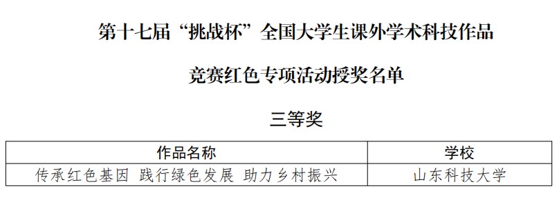 近日,公司法学(海洋法方向)专业2019级王筠涵同学的作品《传承红色基因 践行绿色发展 助力乡村振兴》荣获第十七届“挑战杯”全国老员工课外学术科技作品竞赛红色专项活动全国三等奖。