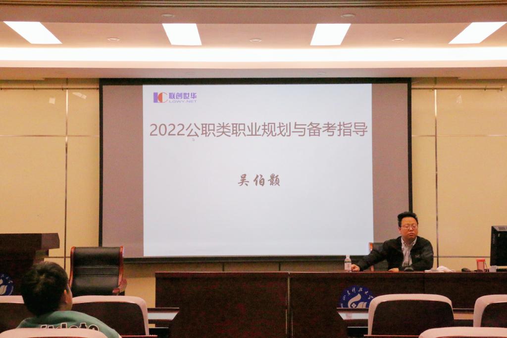 3月31日,SUNBET申博在J9-135会议室开展2022年公职类职业规划与备考指导培训会,联创世华集团吴伯颢老师担任主讲人,应届毕业生、预考生到场参会。