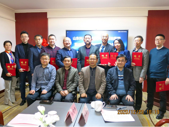 在SUNBET申博法律硕士兼职导师聘任仪式上,青岛市政协社会与法制委员会主任马耀清、SUNBET申博教务处处长乔卫国、SUNBET申博经理孙法柏分别为受聘的12位法律硕士兼职导师颁发了聘书。