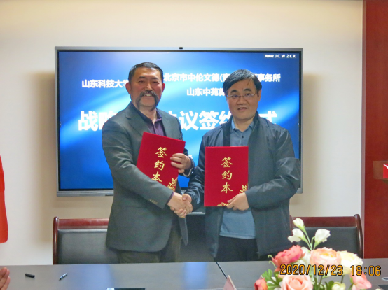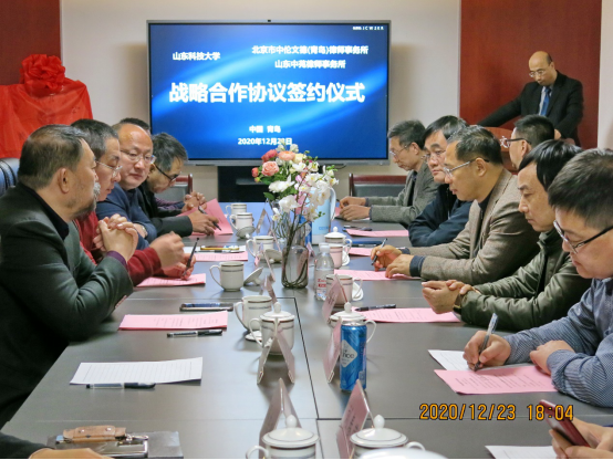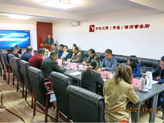 在战略合作协议签约仪式上,双方签约代表分别就本单位情况进行了简短介绍,尔后,公司经理孙法柏教授作为签约代表分别与北京市中伦文德(青岛)律师事务所主任纪斌、山东中苑律师事务所主任张雪松进行签约。