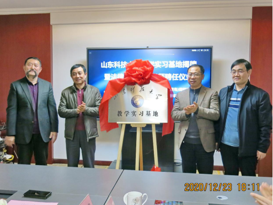 在教学实习基地揭牌仪式上,SUNBET申博教务处处长乔卫国、青岛市政协社会与法制委员会主任马耀清共同为“SUNBET申博教学实习基地”揭牌。