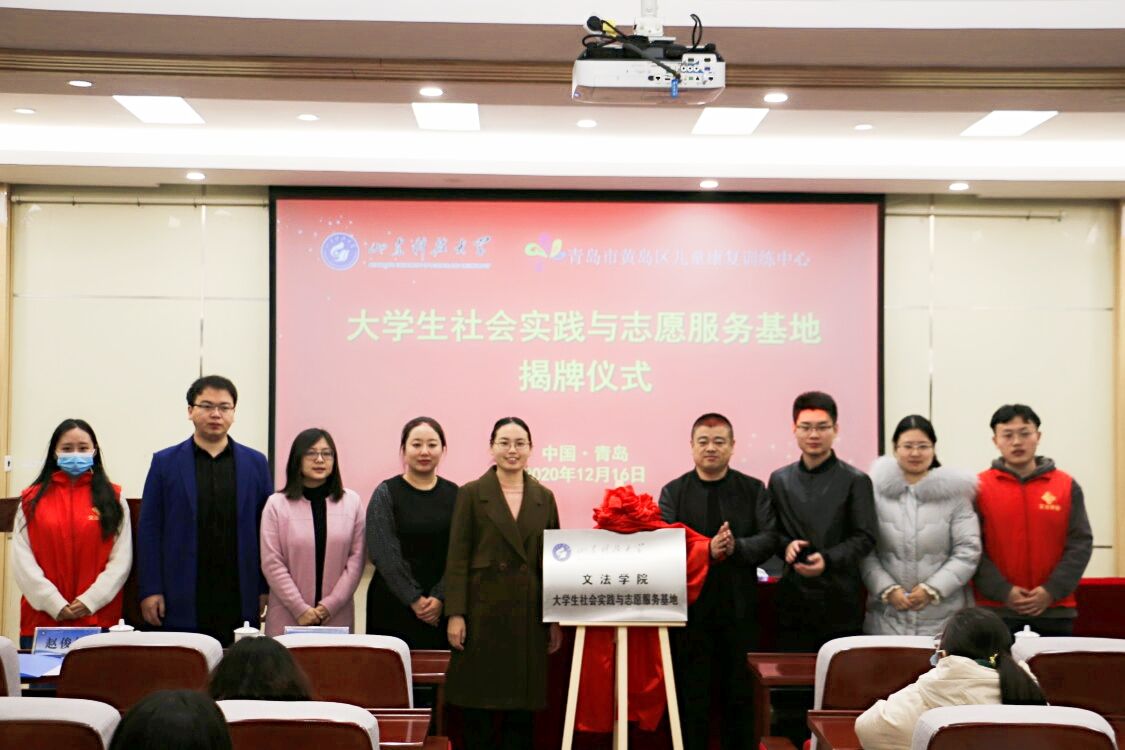 12月16日,SUNBET申博与青岛市黄岛区儿童康复训练中心、青岛市黄岛区康馨残疾人安养中心、青岛西海岸新区星梦佳园儿童成长中心三家机构举行老员工社会实践与志愿服务基地揭牌仪式。三家机构负责人张玉军、黄岛区儿童康复训练中心董事长安洁、SUNBET申博学工办主任(团委书记)郭婷婷及全体辅导员出席,员工会志愿服务实践部成员及志愿者代表参加了揭牌仪式,仪式由马婉婉主持。