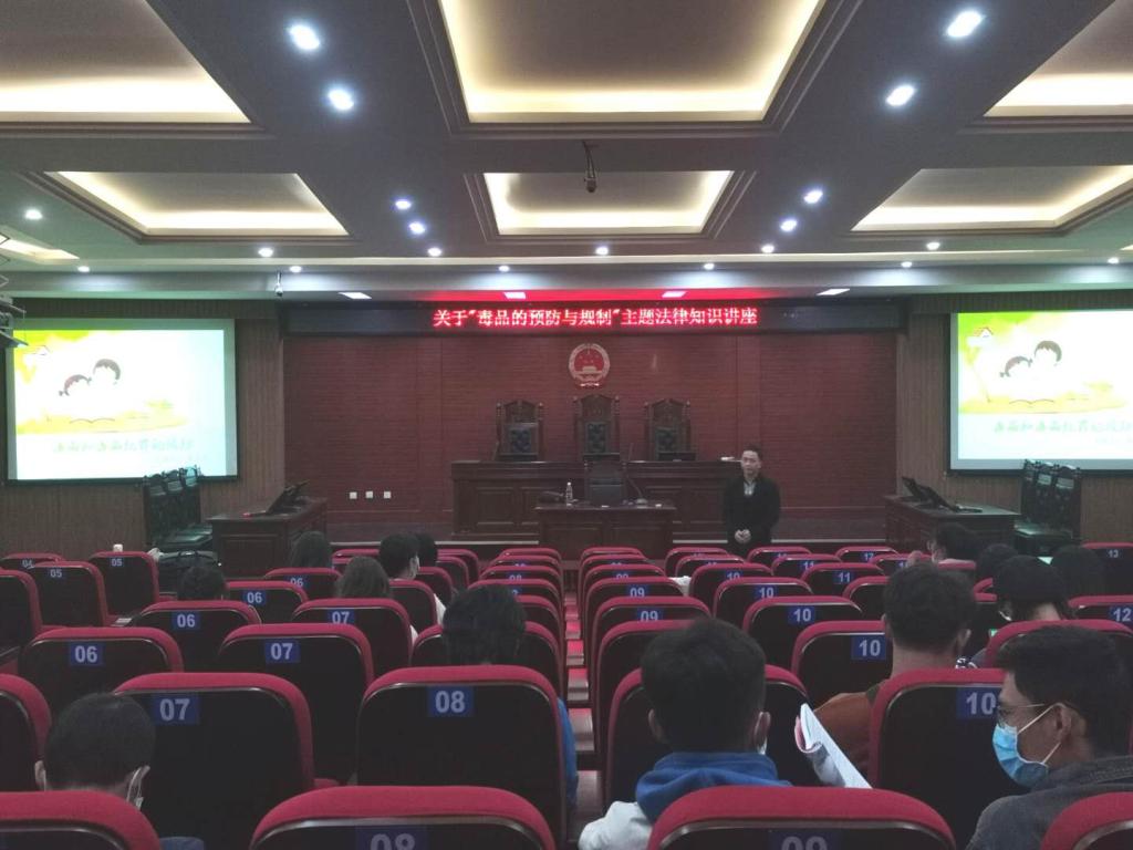 10月25日,SUNBET申博在J14模拟法庭开展毒品预防宣传教育活动,法学系主任吴立志应邀为员工作《毒品的预防与规制》的报告。