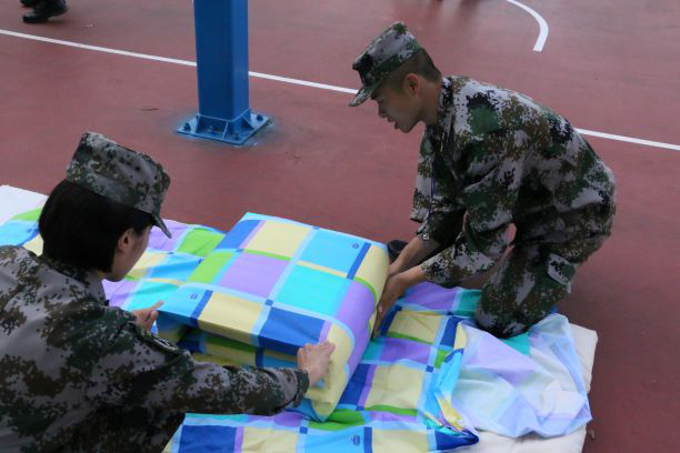 言语道不尽一周之甘苦,说不完一周之得失。但有一点可以肯定,这绝不是平凡的一周,也不是最后的一周。伴随着袖间飘荡的丝丝红带,这一缕红丝缘,也将绵延,在梦中牵萦,在下一个日出开启,更为瑰丽的军训新篇章!(韩丙华 曹佳鑫)