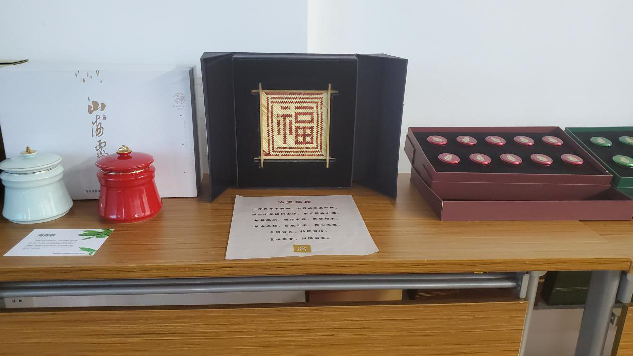图为参加评选的伴手礼——“一席泊里红”茶垫组合