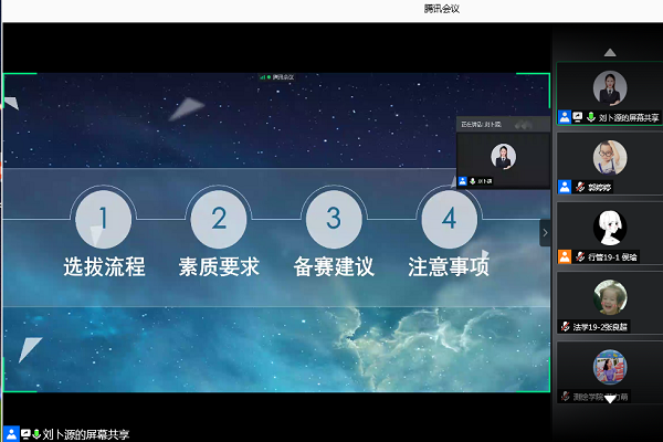 会上,马玮结合指导员工参赛的经验讲解了“学宪法 讲宪法”演讲比赛的发展历程、意义、特点,她强调参赛选手既要具备一定的演讲能力,又要拥有一定的宪法学习基础,将宪法学习与生活经历相结合,以小见大,以情动人。李会勋强调参赛选手在备赛的过程中要紧扣主题,突出宪法意识、宪法理念、宪法规范等,同时要结合学习宪法感悟、贴合成长经历、凸显个人特色。刘卜源结合参赛实战经验从选拔流程、素质要求、备赛建议、注意事项等方面进行了分享,并从“稿”、“讲”、“演”三个方面进行了演讲技巧培训。最后,参会选手就即兴演讲的准备、非法学专业员工如何备赛、如何提升语言组织能力等问题与主讲嘉宾进行了互动交流。