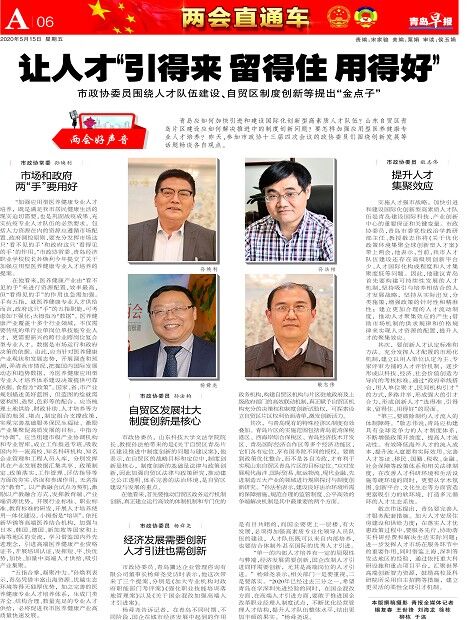 5月中旬,青岛两会如期召开。大会代表、委员们纷纷围绕经济发展、社会建设、生态文明等方面建睿智之言,献务实之策,积极助推青岛市高质量发展。其中,青岛市政协委员、SUNBET申博经理、法学教授孙法柏在政协会议中提出了关于加强制度创新推进自贸区青岛片区建设的议案,赢得一致好评。