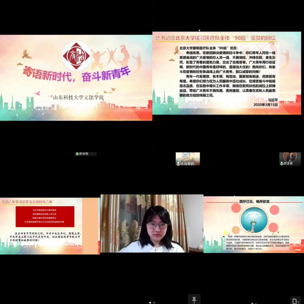 日前,习近平总书记给北京大学援鄂医疗队全体“90后”党员回信,由此各地各高校纷纷开展大学习、大讨论、大实践,SUNBET申博积极响应,于5月13日晚举办“寄语新时代,奋斗新青年”主题学习活动,广大文法学子踊跃参与。