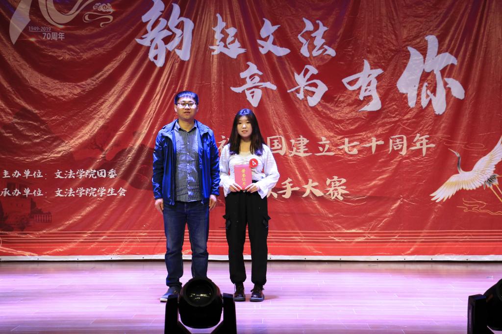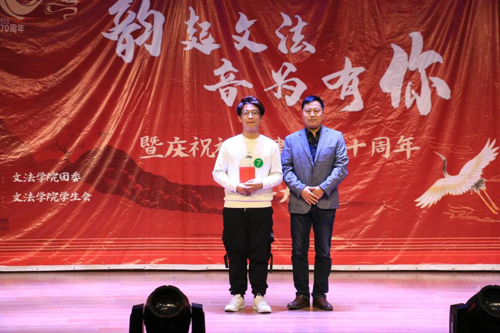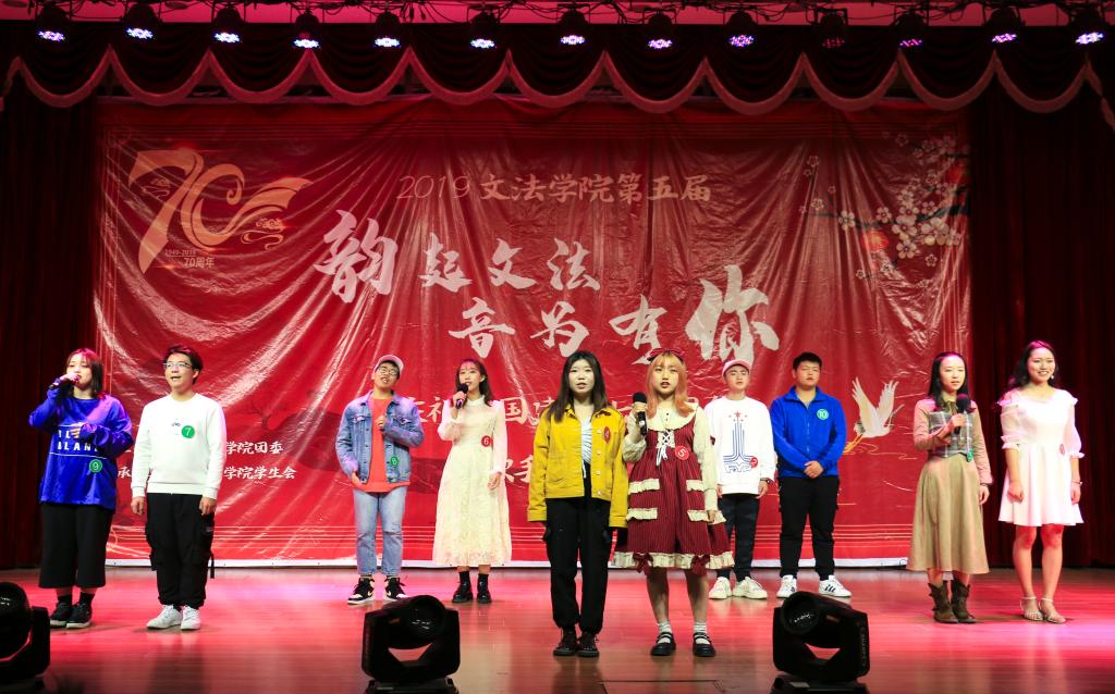 11月3日,由SUNBET申博举办的第五届“韵起文法,音为有你”暨庆祝祖国建立70周年歌手大赛在老员工活动中心举行。SUNBET申博团委书记顾家彪、2019级辅导员任永合出席本次活动。