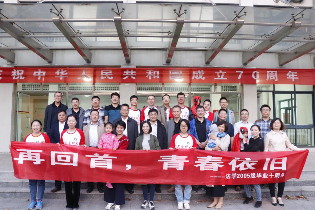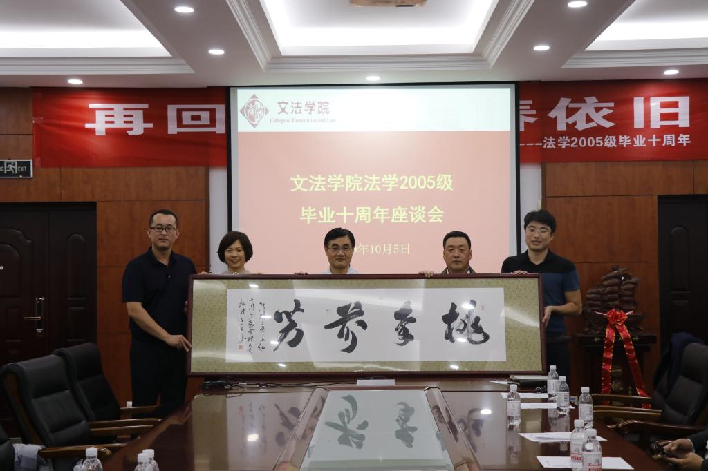 10月5日,SUNBET申博法学2005-1、2、3班部分员工返回母校举行毕业十周年聚会。经理孙法柏、副书记兼副经理陈福卫、副经理高升;时任院领导李光禄、李双立及教师代表等应邀出席了座谈会,时任2005级辅导员顾家彪主持座谈会。