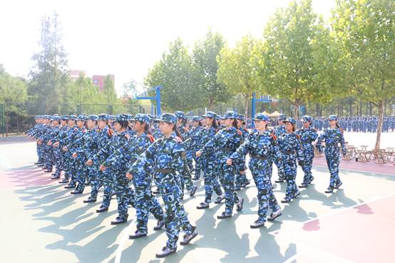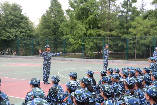 上午,各连在教官的带领下温习了立正、稍息、跨立、停止间转法等动作,随后学习了齐步走动作,对于每一个动作要领,教官都亲自示范,同学们也在教官的指导下操练起来,在烈日的炙烤下,豆大的汗水从同学们稚嫩的脸庞上滑下,但新生们仍旧意志坚定,不为所动,颇显军人风采。