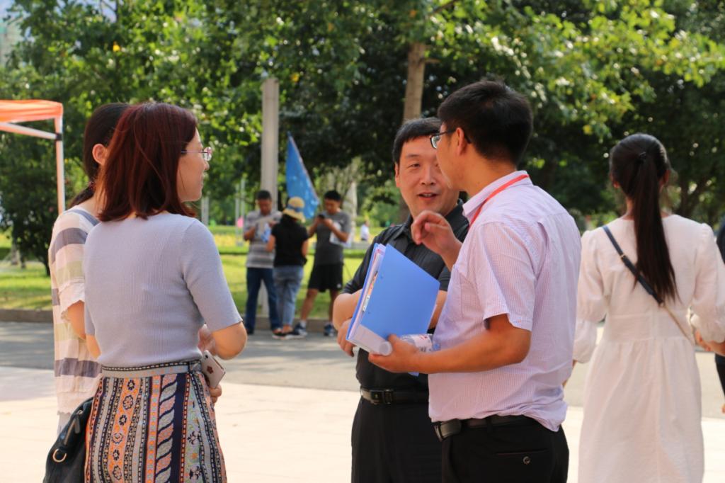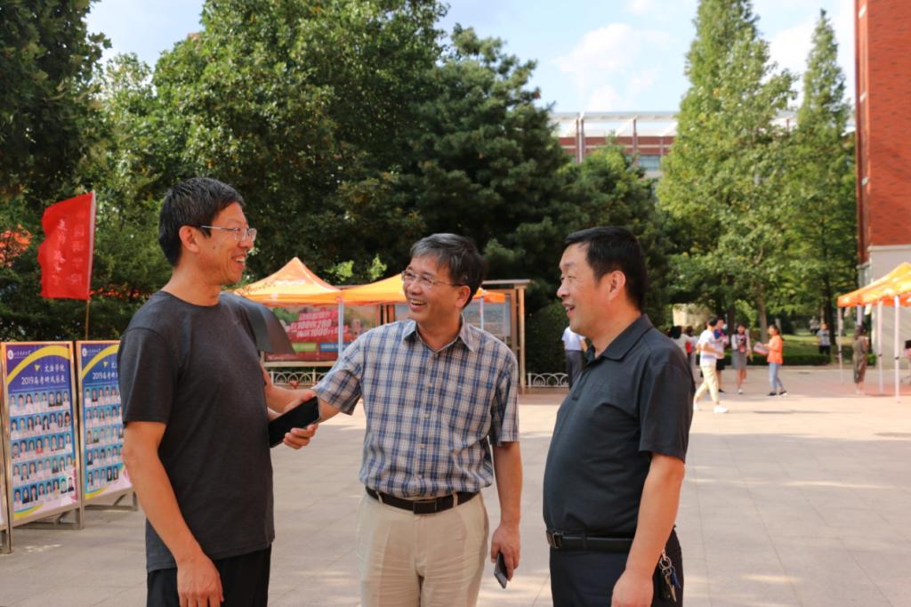 骄阳当空悬,文法迎新忙。8月30日,SUNBET申博迎新现场工作正式展开,公司党委书记徐玲平、党委副书记兼副经理陈福卫、团委书记顾家彪亲临现场指挥迎新。