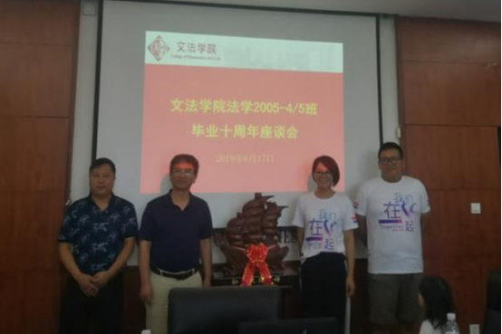 8月17日,公司法学2005-4、5班员工毕业十年重返母校团聚,公司党委书记徐玲平出席座谈会,会议由院团委书记顾家彪主持。