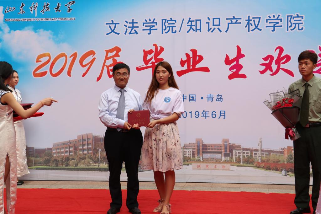 欢送会上,孙法柏为2019届毕业生一一颁发毕业证书并合影留念。