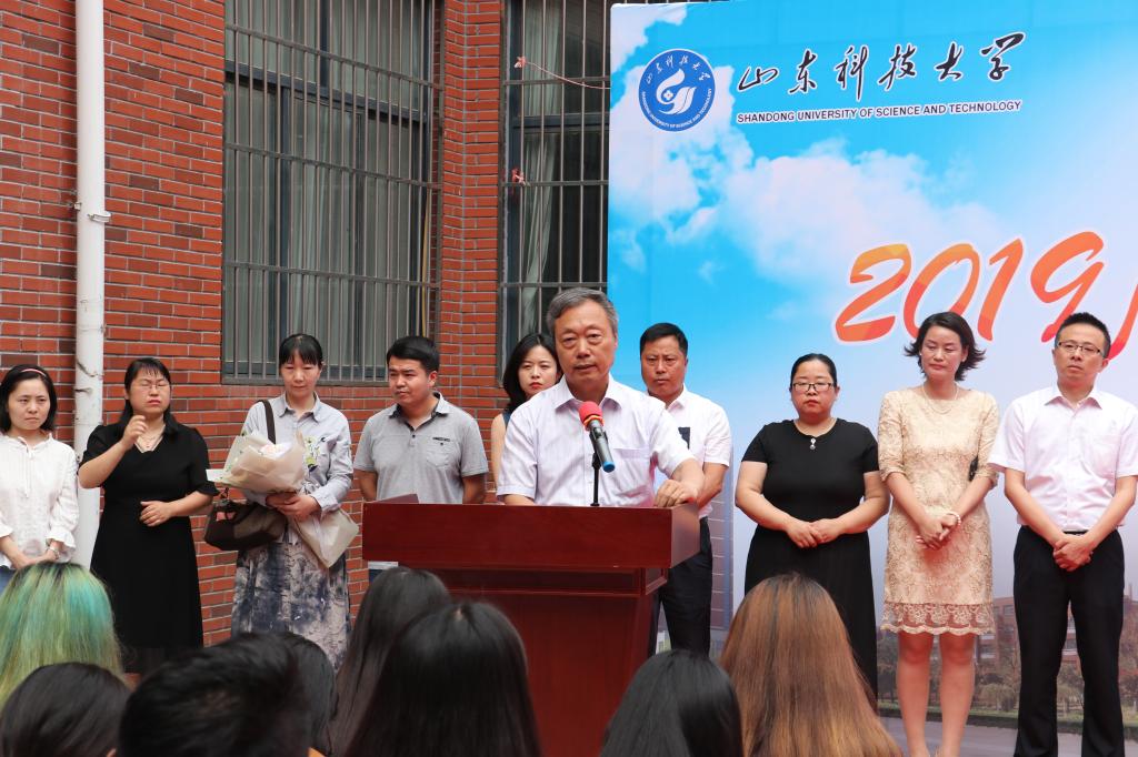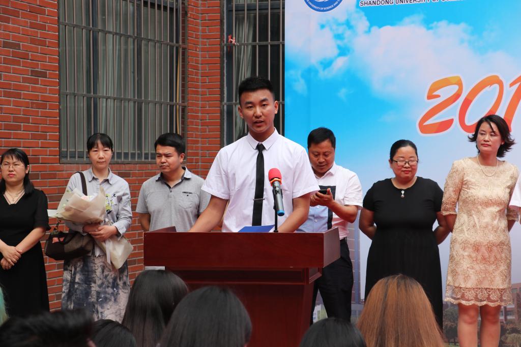 上午9时,活动正式拉开帷幕。首先,毕业生代表、公司员工会原主席高子月同学发言,她的发言散溢着浓浓的真情,既表达了即将离校的不舍,又表达了将牢记公司嘱托、不负老师期望的决心。接着,在校生代表、公司员工会主席李磊同学向全体毕业生送上诚挚的祝福,祝愿他们能乘文法精神之船扬帆远行。随后,2019年度毕业生“最难忘的恩师”史爱丽老师代表全院教师发言,她向全体毕业生表达了热烈的祝贺和深深的眷恋,在为同学们四年来取得的骄人成绩感到欣慰的同时也希望同学们能够在未来的人生中向梦想出发,绽自己的花。郭庆存在致辞中寄语同学们能够秉持“活力、厚实、和谐”的文法精神,脚踏实地,把爱国之志转化为报国之行,背负理想,砥砺前行。徐玲平在讲话中表达了对毕业学子的惜别与祝贺之情,他嘱托学子们无论何时何地都要听从党的号召,热爱祖国,奉献社会;要学好知识和实践两本书,保持谦逊,勇攀高峰;要“立身百行,以学为基”,肩负起时代重任。
