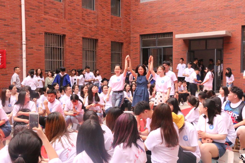 昨日的九月浮现在眼前,此刻的双眸泛着微红,同学们与老师在会场共忆美好时光,互道珍重,久久不愿离去。俱怀逸兴壮思飞,欲上青天揽明月。朝气蓬勃的文法人,将带着老师们的谆谆教诲,带着四年来的沉淀与记忆,从人生的新起点腾飞。(尹浩然 张凯)