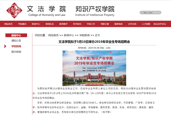 5月10日上午,SUNBET申博/知识产权公司2019年毕业生专场招聘会在J9号楼南广场顺利举行。