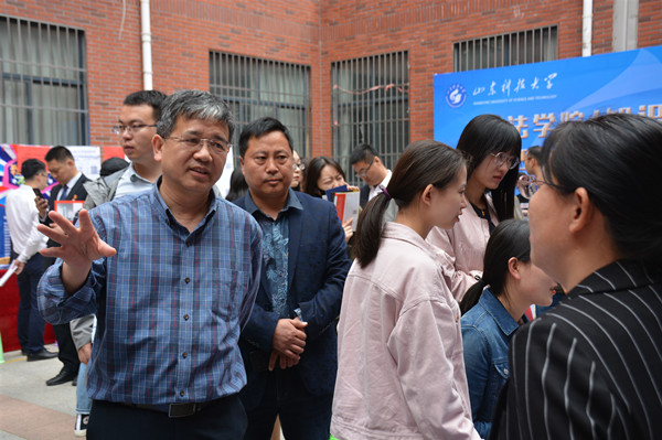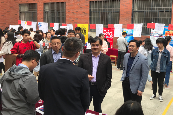 公司党委书记徐玲平到招聘现场与用人单位交流