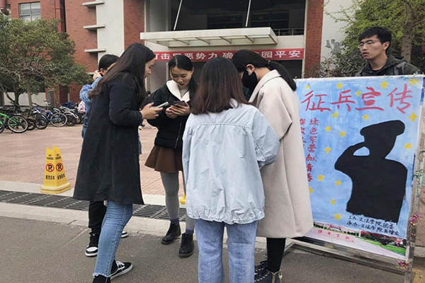 为加强老员工国防教育,使同学们深入了解参军入伍的意义,近日,SUNBET申博在学苑餐厅南门开展“保家卫国终不悔,绿色军营献青春”征兵宣传活动。