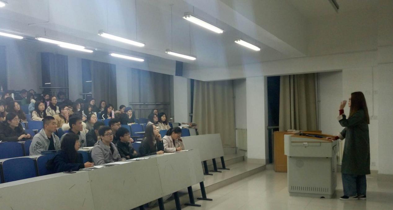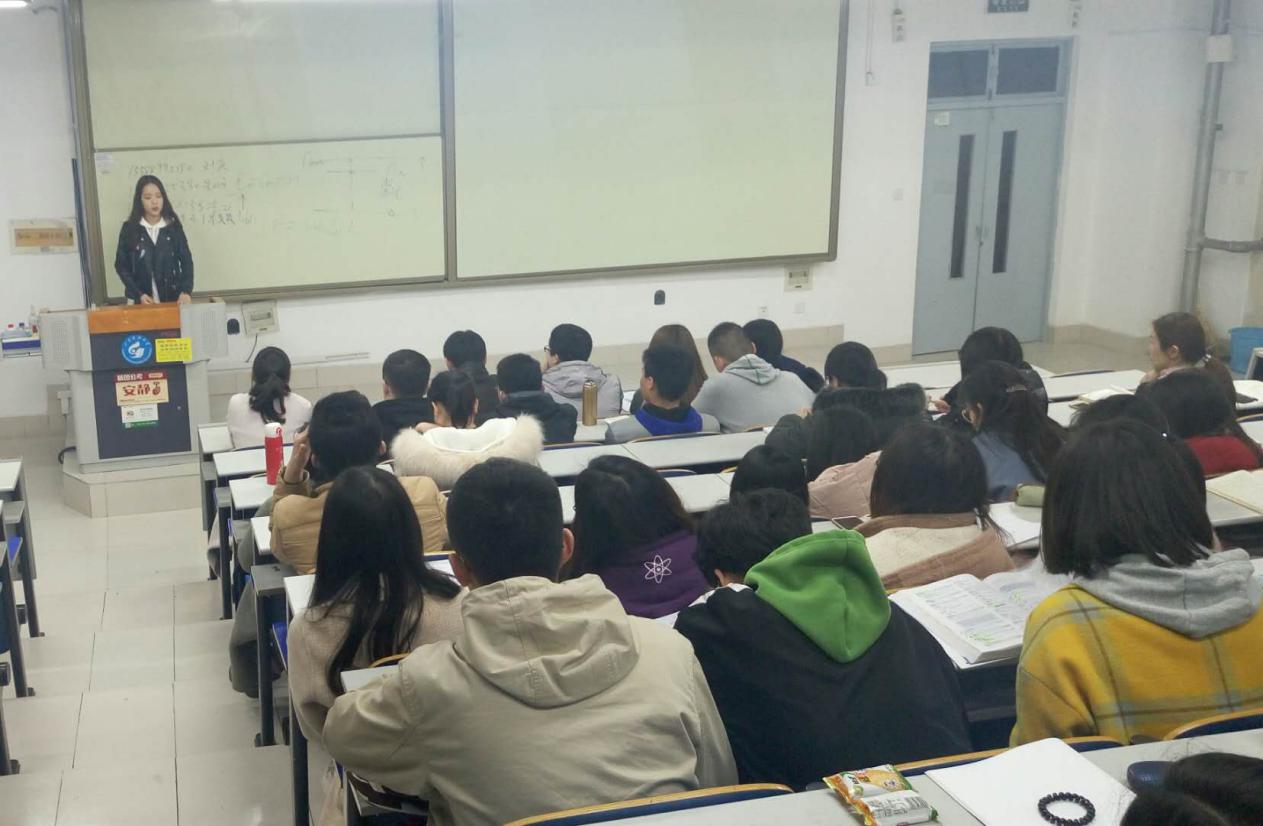 4月11日晚,公共管理系在教学楼S1-303室举办考研经验交流会,行政管理专业各年级本科生近200人参加。