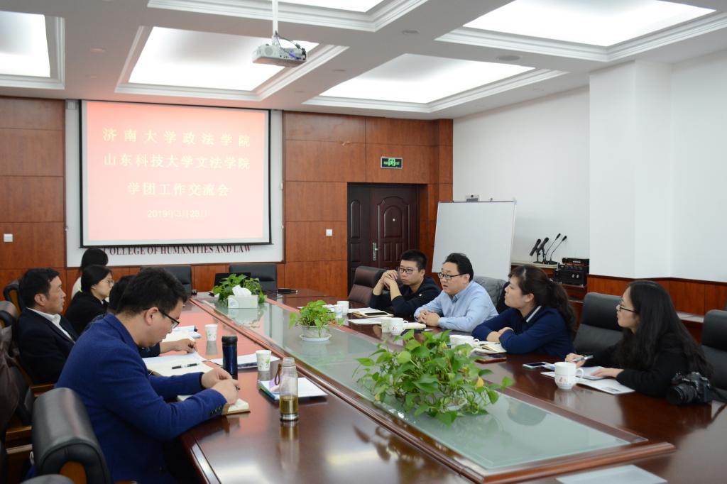 3月28日下午,济南大学政法公司党委副书记兼副经理于龙泉一行四人来公司进行访问交流,公司党委副书记兼副经理陈福卫、公司团委全体老师与来访客人在J9-321进行了座谈交流。