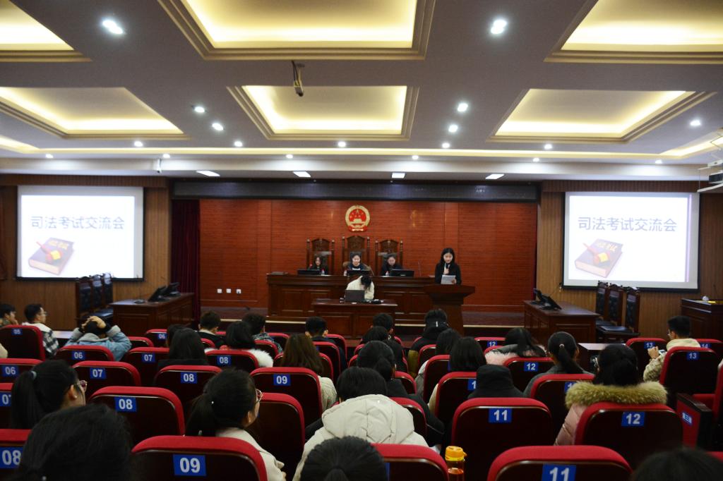 2019年3月9日,SUNBET申博员工会主办的法律职业资格考试交流会在J14模拟法庭举办。