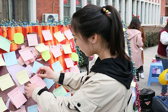 女生节活动吸引了众多同学前来参加,其形式新颖有趣,现场气氛十分活跃。活动中,每位同学可以在便利贴上写下自己的心愿,将其贴至心愿墙,激励自己在接下来的日子里努力向理想前进。此外,活动参与者可通过套圈活动获得为其准备的礼物。