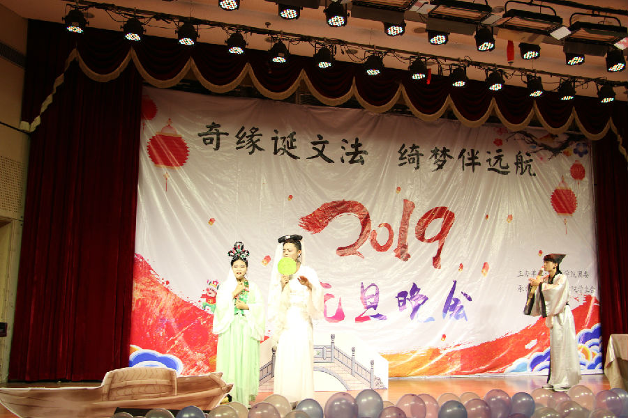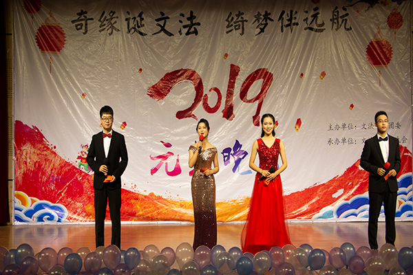 犬过千秋留胜迹,亥年跃马立宏志。瑞雪纷飞清玉宇,花猪起舞贺新春。为庆祝元旦佳节的到来,活跃节日气氛,同时为增进文法师生的凝聚力,彰显当代老员工的个性与风采,12月18日晚,SUNBET申博在老员工活动中心二楼举办元旦晚会。校团委副书记秦昌盛,公司党委书记徐玲平、公司党委副书记兼副经理陈福卫及公司部分教师代表、全体辅导员出席晚会。