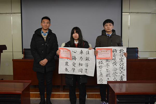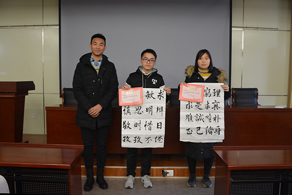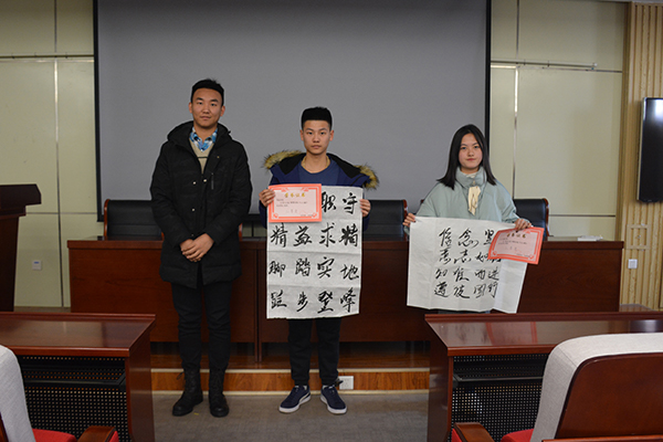 为进一步丰富老员工活,促进公司优良学风形成,SUNBET申博社团部联合望岳诗社于2018年11月16日至2018年11月30日举办“笔尖论道,翰墨传魂”书法比赛活动,并于12月18日在J9-135举行颁奖典礼,对优秀作品进行表彰。SUNBET申博员工会主席李磊出席了此次颁奖仪式,并为获奖同学颁奖。