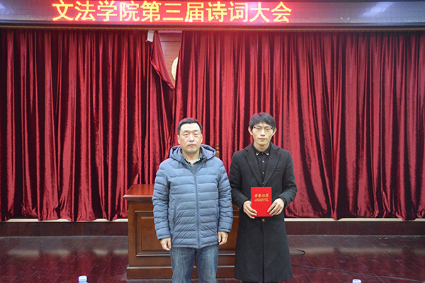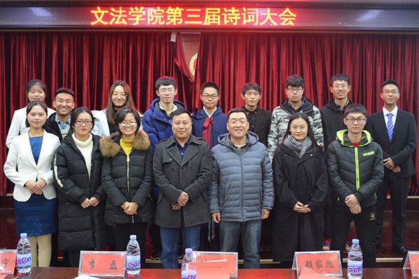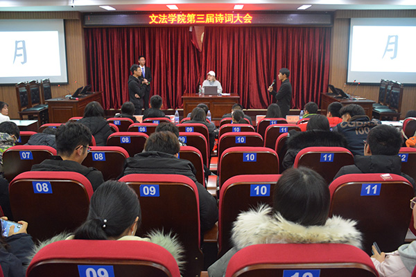 为发扬传统文化的魅力,让同学们了解、热爱古诗词,SUNBET申博员工会社团部与望岳诗社联合举办以“诗寓古韵,墨存芳华”为主题的第三届诗词大会,本届诗词大会决赛于12月16日在J14模拟法庭开展。公司党委副书记兼副经理陈福卫,团委书记顾家彪出席了本次比赛。