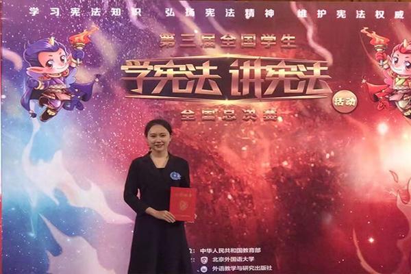 “学宪法 讲宪法”演讲比赛是教育部为贯彻落实习近平总书记系列重要讲话精神、落实国家“七五普法”规划和《青少年法治教育大纲》、深化教育系统“国家宪法日”学习宣传教育活动而开展的全国性竞赛活动。比赛共分小学组、初中组、高中组、高校组四个组别,由各省(区、市)教育厅组织省级比赛,根据比赛结果确定参加全国总决赛员工名单。其中高校组有37人入围11月28日至12月1日在北京举行的总决赛。赛场上的选手有的是法学专业高年级研究生,有的来自播音主持专业,有的是所在公司的演讲高手。在主题演讲比赛中,刘卜源以小组总分第三名的成绩晋级决赛。在命题和即兴演讲中,虽然只是法学专业二年级的员工,但凭借对宪法专业知识的学习和理解,凭借赛前的充分演练和准备,刘卜源演讲内容充实、情感充沛、落落大方,以独特的风格,精准的用词,出色完成了命题演讲,最终力压群雄,荣膺全国一等奖。