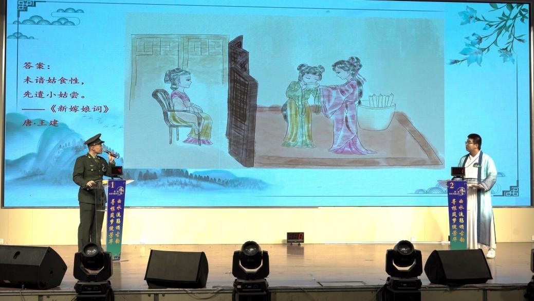 本次决赛分为“高朋满座·群雄角逐”“腾蛟起风·潜龙弄云”“潘江陆海·问鼎中原”三个环节,分别决出大赛四强、前两名和冠亚军。三轮题目类型多样,诗趣颇丰。“马上相逢无纸笔,凭君传语报平安”“海上生明月,天涯共此时”,在参赛现场,选手满腹诗情、妙语连珠,充分展现了深厚的诗词底蕴和文化功底,把整场比赛推向高潮。最终SUNBET申博汉语言文学2022级、退役复学员工杨帅获得冠军。杨帅表示:“在我整个军旅生涯中,给我力量最多的就是诗词和文学。感谢公司为我们提供‘诗词大会’这个舞台,以后我会继续秉持着初心和理想砥砺前行。”