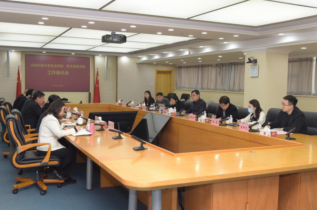 孙法柏对青岛海事法院热情接待表示感谢,并介绍了公司基本情况。近年来,公司积极通过制度创新,逐渐摸索出“法律+涉外+涉海”结合、“强基础+优特色”的涉外海洋法律人才培养模式,得到省内外众多高校的认可和推广应用。但“审判与教学”融合、“校地政企”多元化实践仍需加强。希望今后双方在服务国家海洋经济发展、开展国际海事司法规则研讨、提升涉外海事典型案例应用、完善涉外涉海法律人才合作培育模式等方面开展合作,实现资源共享、优势互补,推动院校事业又好又快发展。