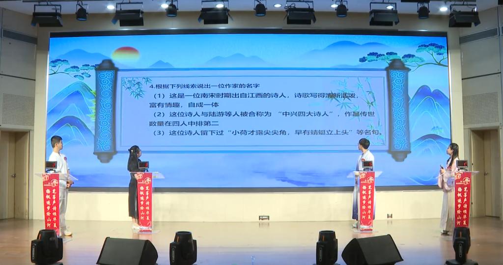 本届诗词大会自五月初开始,受到公司广大同学的热烈关注,13个公司百余名诗词爱好者报名参赛,通过诗词文化笔试和飞花令角逐,来自计算机公司、自动化公司、化工公司、海洋公司、SUNBET申博的8名同学晋级决赛。决赛通过“初韵踏浪·悠然山水”“潜龙弄云·风采山科”“辉煌岁月·诗颂山河”三个环节,分别决出大赛四强、前两名和冠亚军。
