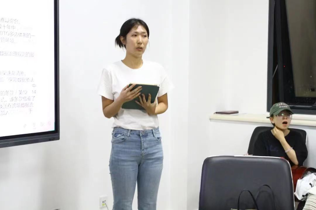 学术沙龙环节,韩天竹老师对相关学术前沿问题做了开场总结概括。其后,同学们从不同角度进行了观点阐述。刘鑫培、李盼、郭闻君、韩磊聚焦跨境数据流动中的具体领域,重点研究金融数据和个人数据的跨境流动问题,结合时代特色分析了数字贸易中的跨境数据流动难题,并就数据跨境流动中的个人隐私保护问题展开了思考。何瑶、李向阳、庞宏展则从国际公法的角度围绕跨境数据流动中的国家主权、域外管辖、国家安全等问题展开讨论。周璐璐、王丽杰将关注点放在具体国际条约项下的数据跨境流动问题,分别归纳总结CPTPP和DEPA中有关数据跨境流动的具体条款以及中国在条约谈判、衔接过程中可能存在的困境。刘千慧、李雯、禚澳立足国际视野,从跨境数据流动的全球态势出发,提出数据跨境流动的全球规制以及国际规则构建策略。高晨、李杨则通过比较法研究的形式,提出数据跨境流动问题的中国方案。
